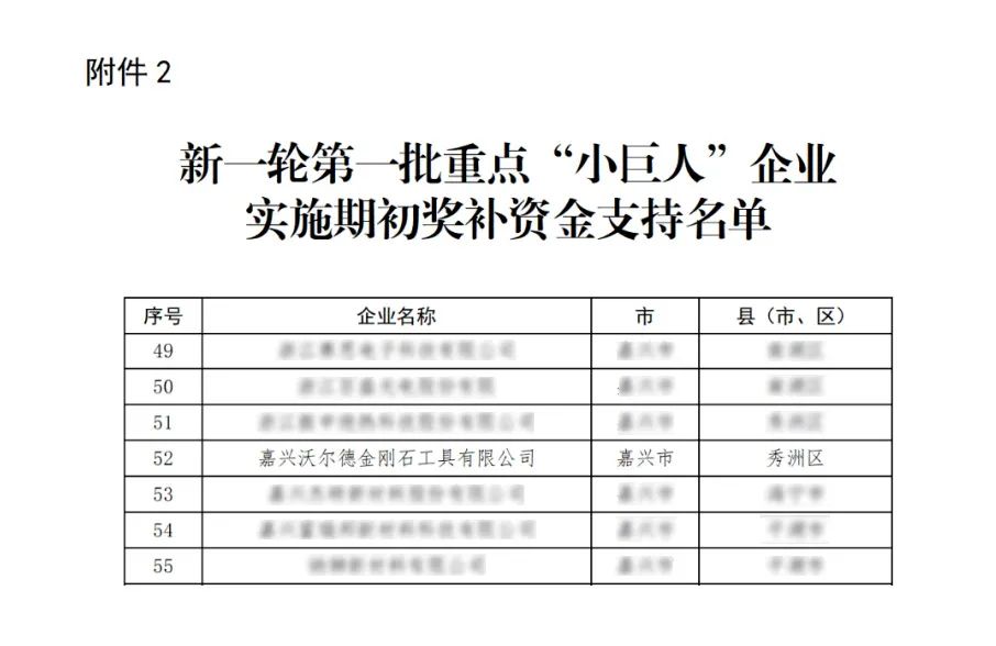 近日,工业和信息化部公示了2024年专精特新“重点小巨人”评审结果,经过严格评审筛选,嘉兴沃尔德金刚石工具有限公司成功入选。
