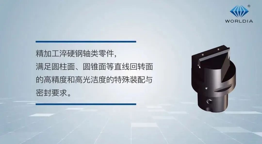 在机床刚性及零件夹持刚性足够的前提下,本产品适用于无纹路精车淬硬钢材料的轴类零件,特别是对加工部位有高精度和无加工纹路高质量要求的特殊装配和密封要求的外圆表面。此外,该加工方式还可扩展到圆柱面、圆锥面等母线为直线的回转面加工,能够在一定程度上取代磨削加工。例如,在新能源汽车电机轴的轴承安装和密封部位以及转子包外圆的精加工中表现出色。