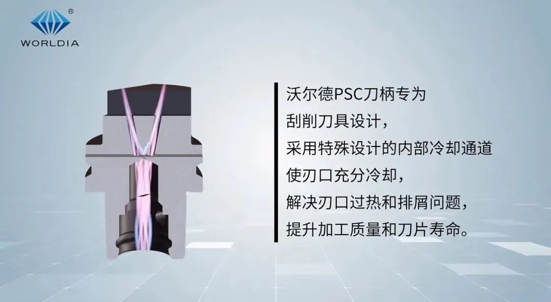 沃尔德的PSC刮刀车削系统凭借创新的"以刮代磨"技术脱颖而出。其有效解决了回转加工表面细纹螺旋纹路难题,通过优质的材料选型和独创的刀具结构设计,在保证加工精度的同时,直接省去了传统磨削工序,显著降低生产成本。