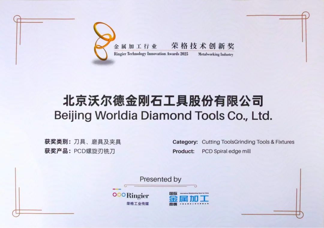 沃尔德PCD螺旋刃铣刀凭借其卓越的创新性与技术优势,成功斩获这一极具权威性的行业大奖。此次获奖,是沃尔德继PSC刮刀车削系统及CV-Joint球道铣刀之后,在2025年获得的又一重磅荣誉,进一步彰显了沃尔德在高端刀具领域的领先地位。
