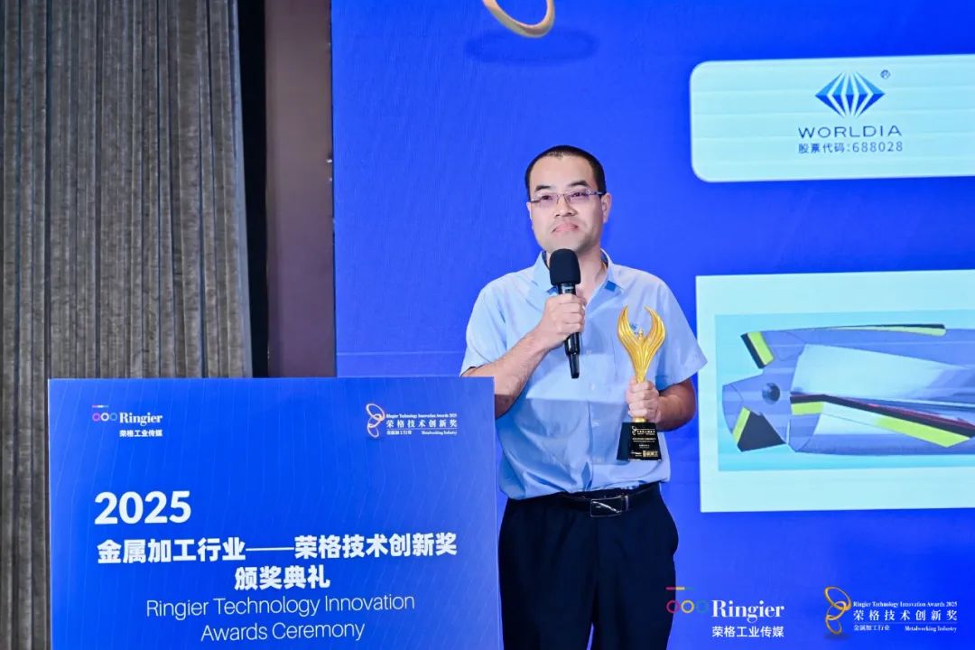 荣格技术创新奖是中国金属加工领域极具影响力的奖项之一,以其严格、公正的评选流程著称。本届评选吸引了76家企业的93项创新产品/技术参与角逐,涵盖金属切削机床、成形机床、数控系统、刀具等多个领域。经过激烈竞争,沃尔德PCD螺旋刃铣刀凭借其突破性的技术表现,从众多优秀产品中脱颖而出,成为37项获奖创新之一。