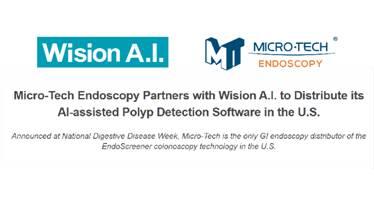 2022年5月24日,圣迭戈,美国消化疾病周DDW 2022期间,医用光学影像AI软件厂商-微识医疗Wision A.I.宣布与Micro-Tech Endoscopy USA(MTU)建立了业务伙伴关系。MTU是中国内镜微创诊疗器械龙头南微医学的美国子公司,作为微识医疗在海外市场的首个渠道商,负责公司的消化内镜领域人工智能产品在美国的商业化落地。