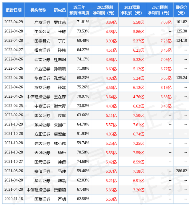 以下是详细的盈利预测信息: