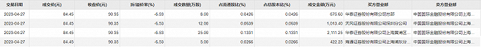 南微医学4月27日大宗交易成交50万股,成交额4222.5万元,占当日总成交额的9.03%,成交价84.45元,较市场收盘价90.35元折价6.53%。