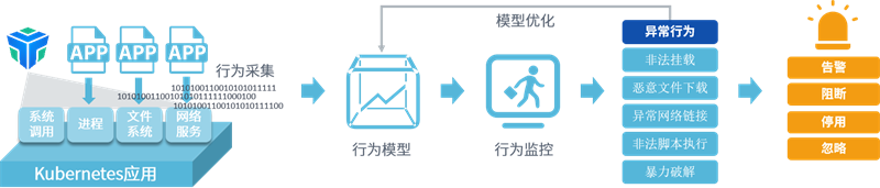 山石云铠提供了自定义Kubernetes应用学习时长的功能,允许用户根据实际需求设置学习时长。在学习期间,山石云铠会通过自动学习分析应用的进程、文件和网络行为,并生成相应的行为模型。安全管理人员可以快速将这些行为模型转化为行为规则,这些规则可以用于检测和识别不合规的行为,例如异常文件操作或可疑网络通信等。发现不合规行为后,山石云铠会自动进行告警、阻断或停用等动作,以确保容器集群的安全性。