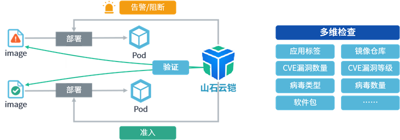 应识别容器镜像内的病毒、木马等恶意代码,对危险容器镜像告警并阻止该镜像加入容器仓库。