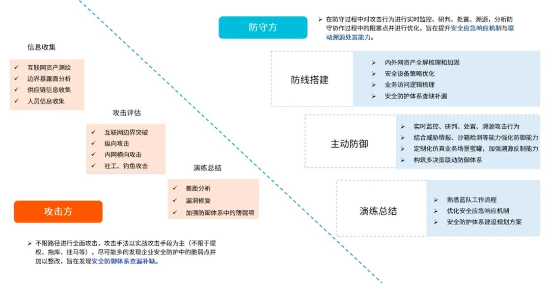 山石网科实战攻防对抗体系可有效结合客户业务环境和场景,提供红蓝对抗、攻防演练、攻防活动组织等攻防对抗类解决方案,助力信息和暴露面收集,尝试利用可能利用的风险点并进行复盘总结分析,解决安全防线“木桶效应”;通过攻防对抗识别防守流程阻塞点,提供安全风险治理和安全体系建设的咨询服务,构建“知功善守”的安全能力,建设合理、有效的主动防御体系。