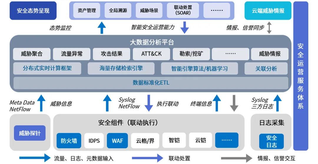 山石网科智源智能安全运营系统是全息数据驱动的AI 分析运营系统,由分析平台与多种安全组件共同构成,旨在完成海量数据的采集与分析,并提供安全态势呈现、全网资产梳理、策略集中管理、智能威胁分析、深度溯源取证和联动响应等功能,解决用户所面临的监控盲区、未知威胁和低效运维等问题。