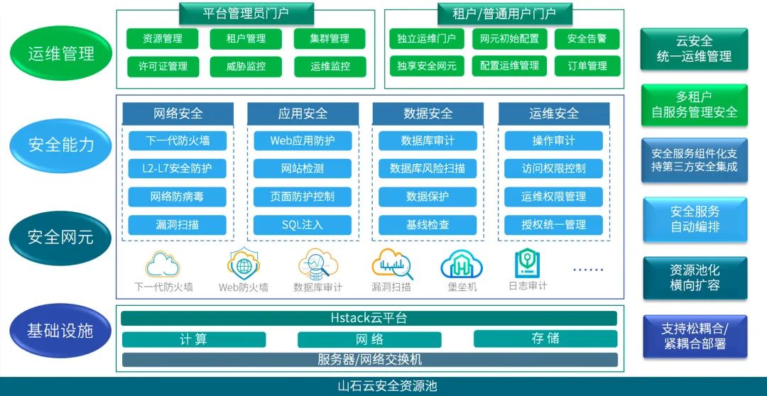 山石云·池是山石网科根据多年对用户云计算场景下安全问题的理解和研究,精心研发的一套具有独特性的云安全资源池方案,可充分满足用户在不同IT环境下的安全需求。该方案具备云计算安全统一管理、安全防护按需自动化编排、安全资源弹性伸缩及统一管理多租户等功能,不仅为用户提供了最佳的云环境安全解决方案,还进一步帮助用户在云上一站式快速满足等保合规需求。
