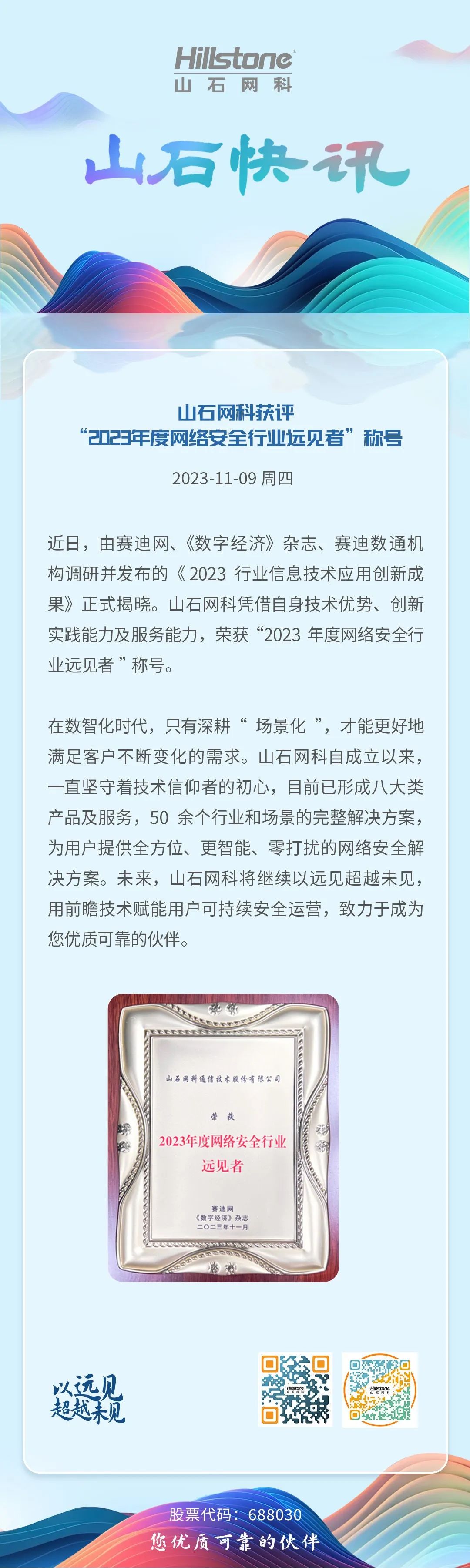 以远见超越未见|山石网科获评“2023年度网络安全行业远见者”称号