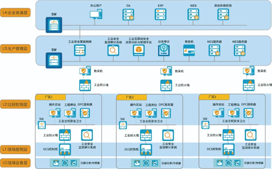 山石网科“Trust -E”工业互联网安全解决方案,是基于实现融合先进安全技术的安全生产可信环境理念,在满足客户等保、关保、行业规范等合规需求下,形成的一套涵盖工业互联网边缘层、控制层、应用层与平台层的整体解决方案。方案包含下一代工业防火墙(IIOT)、工业网闸、工业安全数据采集网关、工业安全监测审计系统、工业安全主机防护系统、工业互联网安全态势分析与管理平台。