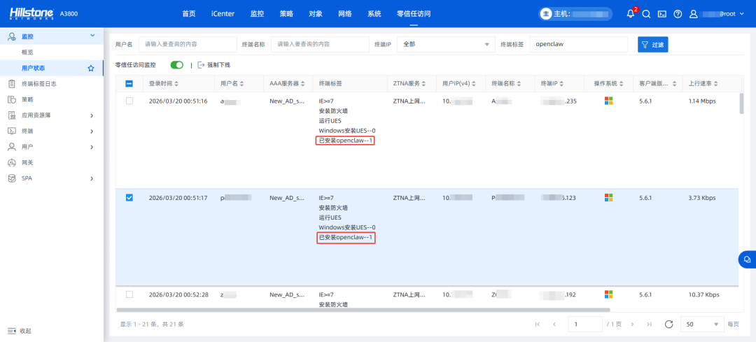 图注:防火墙ZTNA监控用户终端是否安装OpenClaw