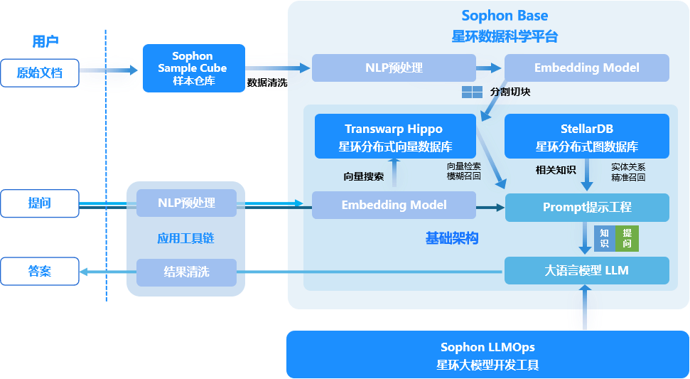 然而,大模型只有向量数据库还不够。在召回的基础上通过提示工程确保数据更精确,更贴近实际场景,同样也是重要的一环。星环科技将分布式向量数据库Hippo和分布式图数据库StellarDB结合,并以此作为微调的数据凭依,可以更低成本、更高效地构建特定领域的大模型应用。