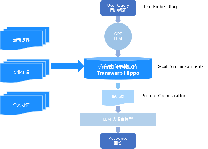 基于星环分布式向量数据库Hippo,可以有效地解决大模型在知识时效性低、输入能力有限、准确度低等问题。通过将最新资料、专业知识、个人习惯等海量信息向量存储在星环分布式向量数据库Hippo中,可以极大地拓展大模型的应用边界,让大模型保持信息实时性,并能够动态调整,使大模型拥有“长期记忆”。