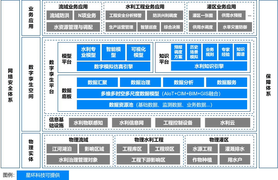 数字孪生水利工程是以物理水利工程为单元、时空数据为底座、数学模型为核心、水利知识为驱动,对物理水利工程全要素和水利治理管理活动全过程的数字映射、智能模拟、前瞻预演,实现对物理水利工程的实时监控、发现问题、优化调度的新型基础设施。