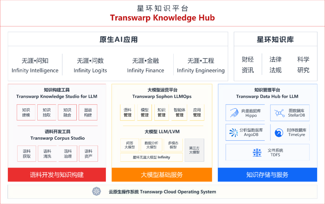 星环知识平台 TKH 拥有从语料到模型再到应用的完整的 AI Infra 工具集,覆盖语料开发和管理、大模型训练与持续提升、多模态知识工程、多模知识存储与服务、原生 AI 应用构建编排和应用服务等重要阶段,提供提示词工程、检索增强、智能体构建等大模型应用快速构建和提升、模型推理优化、模型安全和持续提升技术。此外,TKH 支持异构算力、语料、知识、大模型应用的统一管理,为数据和语料资产的集约化提供了一站式平台,且具备企业级的组织空间管理能力。