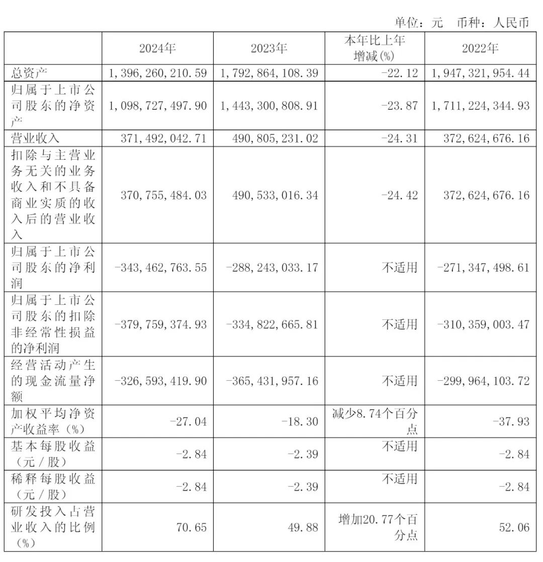 财报显示,星环科技2024年营收为3.71亿元,较上年同期的4.9亿元下降24%;净亏损为3.43亿元,上年同期的净亏损为2.88亿元;扣非后净亏损为3.8亿元,上年同期的扣非后净亏损为3.34亿元。