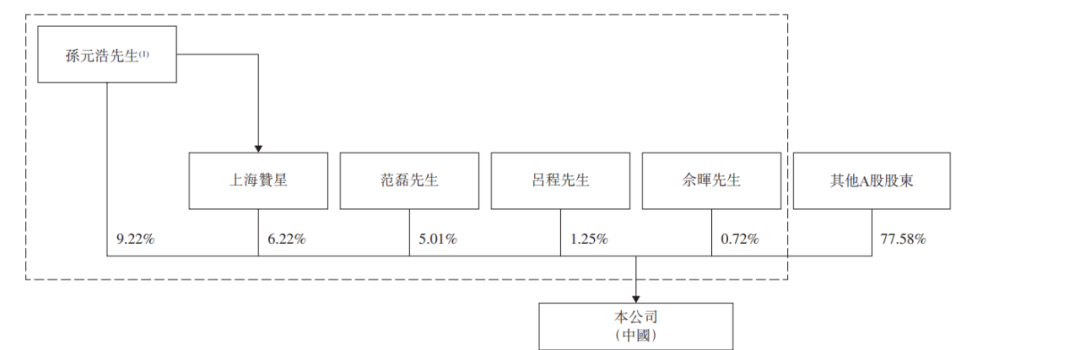 IPO前,星环科技在上市前的股东架构中,由主要控股股东孙元浩先生直接持股约9.22%;上海赞星持股约6.22%,孙元浩先生作为其合伙人直接持有其0.38%的合伙权益;范磊先生持股约5.01%;吕程先生持股约1.25%;余晖先生持股约0.72%,以上四位先生及上海赞星订立一致行动协议。