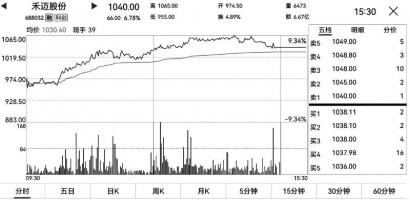 7月7日早盘,最近表现强势的禾迈股份一鼓作气,一举攻破1000元大关,午后继续上攻,截止收盘,报于 1040 元,涨幅达6.78%。