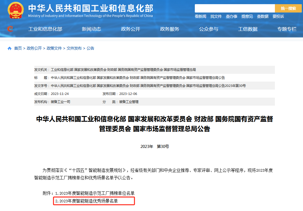 近日,工业和信息化部公布了2023年度智能制造示范工厂揭榜单位和优秀场景名单,天宜上佳智能协同作业项目成功入选“2023年度智能制造优秀场景”。
