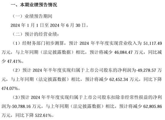 8月9日,天宜上佳发布公告,预计2024年上半年实际营收5.11亿元,较于去年同期下降47.41%,归母净利润将达到-4.93亿元,相较于去年同期下降高达474.07%。