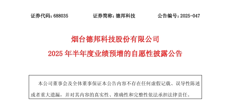 近日,德邦科技披露的业绩预告给公司发展带来了希望。公司预计2025年上半年实现营收6.87亿元至6.92亿元,同比增长48.39%至49.47%;归母净利润4300万元至4700万元,同比增长27.56%至39.42%;扣非净利润预计4200万元至4600万元,同比增长45.54%至59.4%。