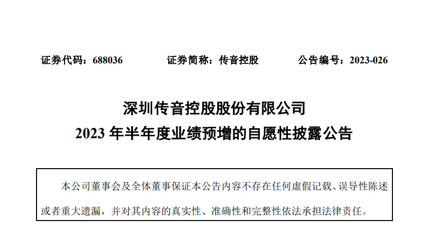 IT之家7月26日消息,传音控股于今日公布了 2023 年半年度业绩预增的自愿性披露公告,上半年净利同比预增 27.1%左右。