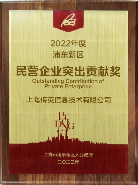 凭借突出的行业地位和领先的科技实力,上海传英屡获政府的高度评价,被认定为“国家高新技术企业”、“上海市科技小巨人企业”、“上海市技术中心”、“上海软件企业百强”、“上海硬核科技TOP100”、“上海新兴产业企业100强”、“上海民营服务业企业100强”、“浦东新区企业研发机构”、“浦东新区区域性总部”、“浦东新区博士后创新实践基地”、“大企业开放创新中心”、“浦东新区大企业总部”等。