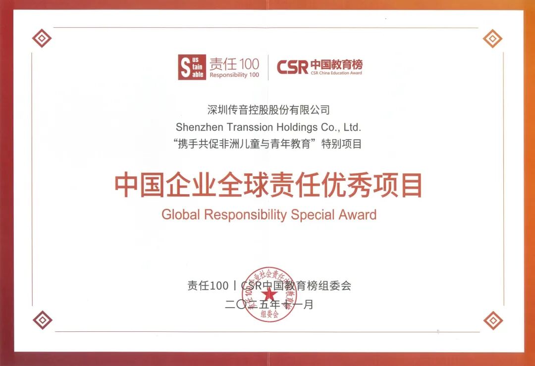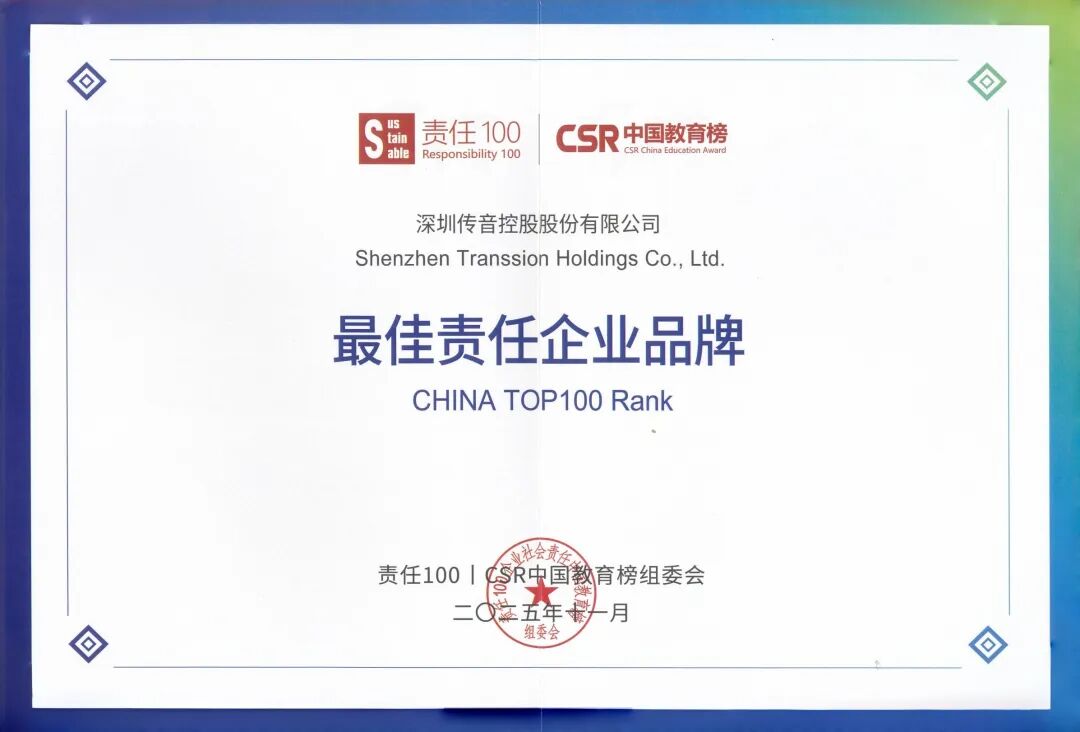 2025年11月26日,“责任100|2025年第九届CSR中国教育榜”获奖名单正式发布。 传音控股 凭借在海内外持续深耕的社会责任实践,获评“最佳责任企业品牌”;其与联合国难民署(UNHCR)共同开展的“携手共促非洲儿童与青年教育”特别项目,荣获“中国企业全球责任优秀项目”。
