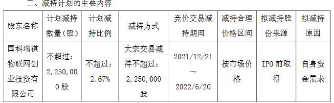 截至公告披露日,国科瑞祺持有芯源微股份225.00万股,占公司总股本的2.67%。上述股份来源均为公司IPO前取得的股份,且已于2020年12月16日解除限售并上市流通。