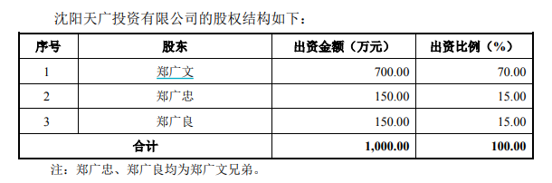 2010年8月,郑广文收购沈阳天广70%的股权,郑广文通过控制沈阳天广间接控制了先进制造;