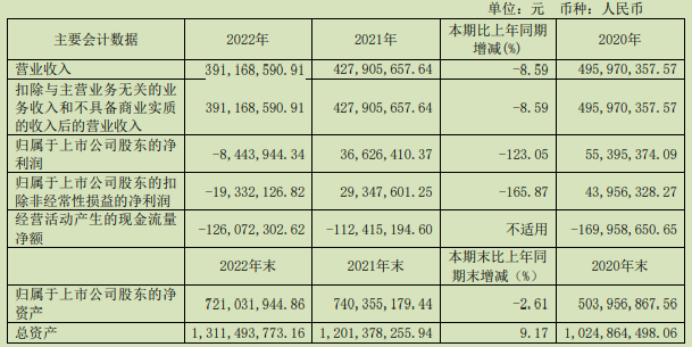 挖贝网4月15日,中科通达(688038)近日发布2022年年度报告,报告期内公司实现营业收入391,168,590.91元,同比下滑8.59%;归属于上市公司股东的净利润-8,443,944.34元,较上年同期由盈转亏。