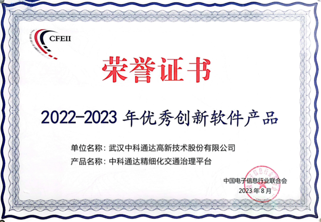 8月31日,中国电子信息行业联合会在2023第二十五届中国国际软件博览会上,发布了《2022-2023年度优秀创新软件产品推广目录》。中科通达自主研发的核心软件平台“中科通达精细化交通治理平台”成功上榜!