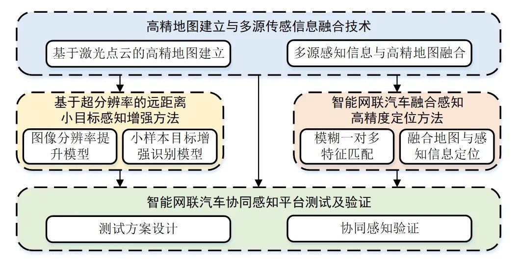 该项目围绕高精地图建立与多源传感信息融合技术、基于超分辨率的远距离小目标感知增强方法、智能网联汽车融合感知高精度定位方法,以及智能网联汽车协同感知平台测试及验证等关键内容展开深入研究,旨在通过开发智能网联汽车协同感知平台,解决车路多源传感器的信息感知不精准和信息融合不全面的技术难题。