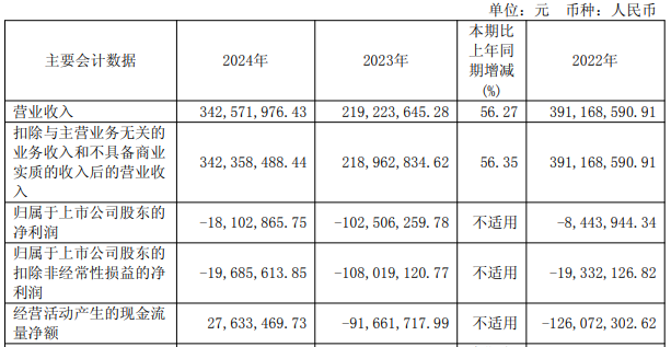 2022年、2023年、2024年,中科通达归属于上市公司股东的净利润分别为-844.39万元、-10250.63万元、-1810.29万元;归属于上市公司股东的扣除非经常性损益的净利润分别为-1933.21万元、-10801.91万元、-1968.56万元。