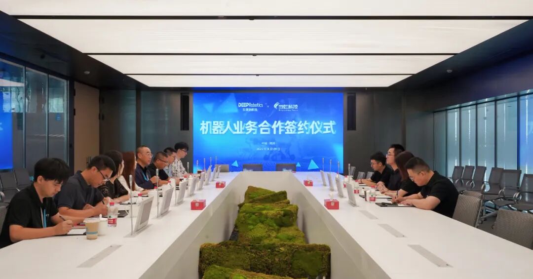 8月29日上午,杭州当虹大厦,云深处科技创始人朱秋国、当虹科技董事长孙彦龙,分别代表双方企业签署“机器人业务合作协议”,共同开启“具身智能+人工智能”融合发展新篇章。