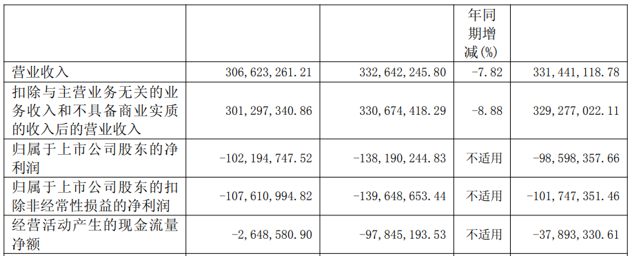 2024年,当虹科技实现营业收入3.07亿元,同比下降7.82%;归属于上市公司股东的净利润-1.02亿元,上年同期为-1.38亿元;归属于上市公司股东的扣除非经常性损益的净利润-1.08亿元,上年同期为-1.40亿元;经营活动产生的现金流量净额-264.86万元,上年同期为-9784.52万元。