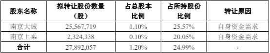 出让方拟转让股份的总数为27,892,057股,占上市公司总股本的比例为1.20%;本次询价转让为非公开转让,不会通过集中竞价交易方式进行。受让方通过询价转让受让的股份,在受让后6个月内不得转让;本次询价转让的受让方为具备相应定价能力和风险承受能力的机构投资者。