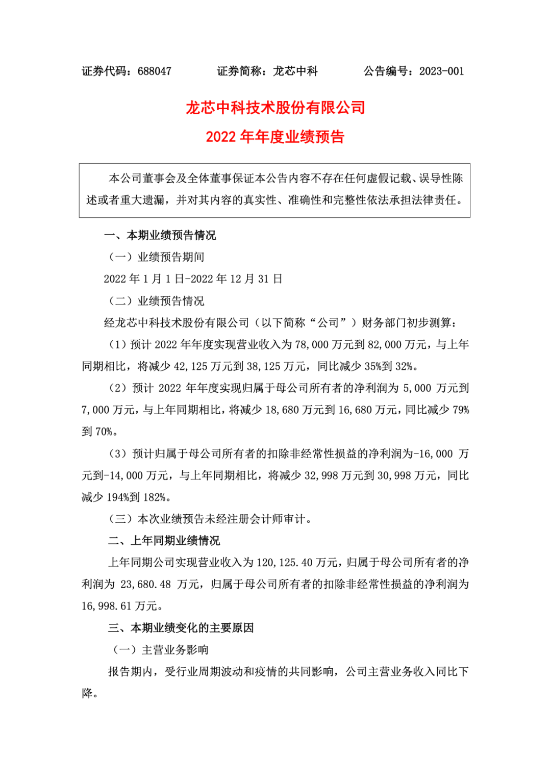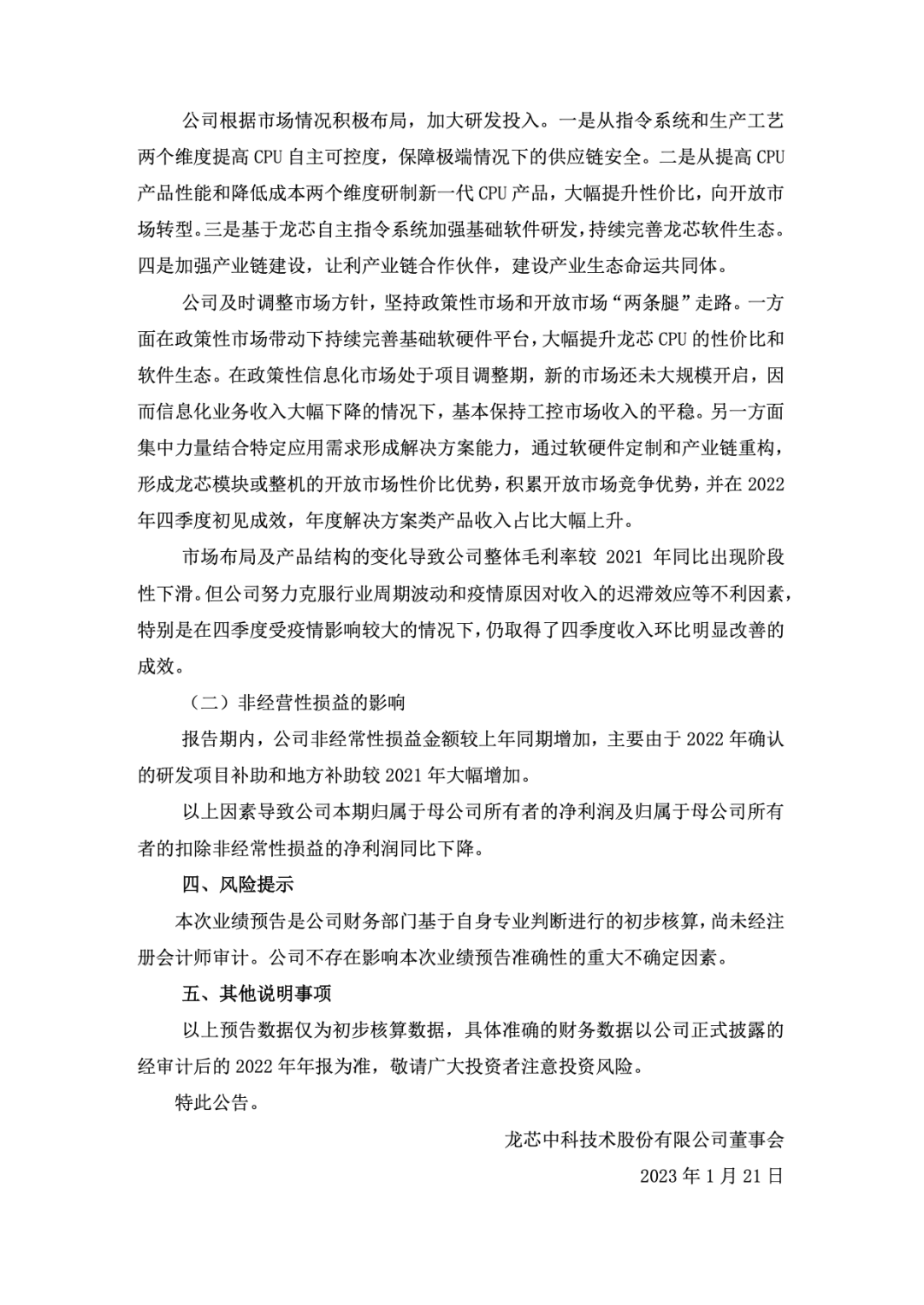 2023年1月21日,龙芯中科发布《2022年年度业绩预告》。