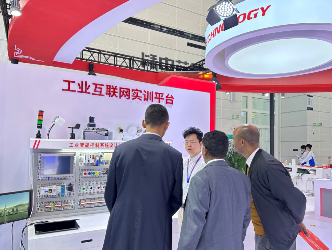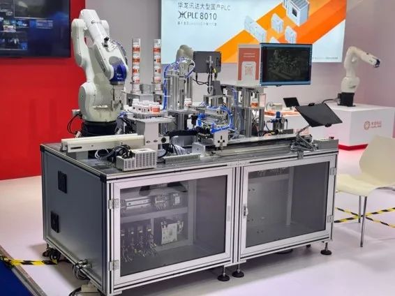 华龙迅达具身智能小站、国产PLC、CS5202LS-EES生成式工业互联网教学实验系统、信创NUC、自主可控SCADA开发平台、金蝶云·苍穹平台等产品在该模块亮相,突显了国产技术在推动行业发展中的关键作用。