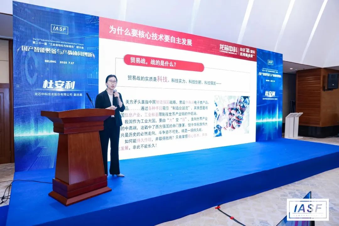 龙芯中科副总裁杜安利以《自主“芯”技术?智能装备发展与实践》为题,介绍国产智能装备产业的市场容量及未来发展,龙芯中科以自主芯片软硬件技术为基础,为国产智能装备性能提升、产业链和技术链创新、工业数据安全保障等方面提供底层支撑,大会现场,杜安利通过落地应用案例展现自主“芯”技术的推动价值。