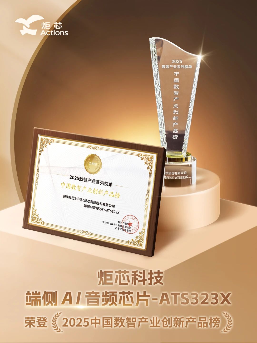 炬芯科技端侧 AI 音频芯片 ATS323X 荣登中国数智产业创新产品榜
