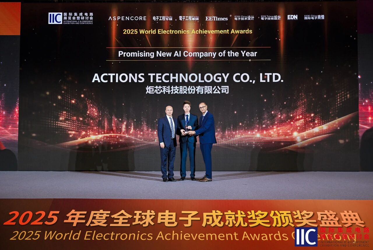 11月25日,由全球电子工程领域权威技术媒体AspenCore重磅发起的“2025全球电子成就奖”正式揭晓, 炬芯科技 凭借前瞻性的技术创新,基于存内计算架构打造三核异构端侧AI芯片,为AI应用注入极致高能效比的AI算力,并且成功完成了技术商业化落地,荣膺“全球电子成就奖--2025年度潜力AI技术公司奖”,充分彰显了公司在低功耗端侧AI芯片赛道的技术实力与商业落地潜力。
