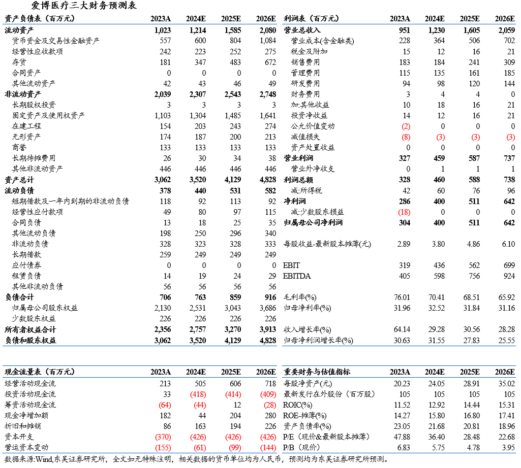 盈利预测与投资评级:考虑到宏观环境及消费较为疲软,我们将2024-2025年归母净利润由4.21/5.83亿调整至4.00/5.11亿,2026年归母净利润为6.42亿元,当前市值对应PE为36/28/23倍,我们看好公司作为国内眼科医疗器械创新者未来的发展,维持“买入”评级。