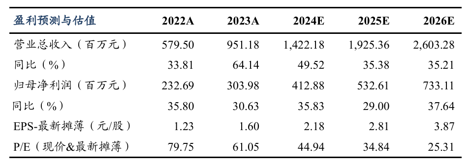 | 投资要点事件:公司公告,2024年前三季度,公司实现营业总收入10.75亿元(+60.94%,表示同比增速,下同),归母净利润3.18亿元(+26.04%),扣非归母净利润3.04亿元(+27.41%),收入超我们预期。公司Q3单季度业绩继续保持强劲增长势头。单Q3收入实现3.90亿(+49.11%),归母净利润1.10亿(+23.38%),扣非净利润1.05亿(+22.88%)。 Q3单季度由于产品结构导致净利率和毛利率同比略降。2024Q3单季度,公司销售毛利率/销售净利率分别为63.95%/26.92%,分别同比变化-14.99pct/-5.62pct。我们预计公司毛利率变动主要是美瞳产品业务占比提升,随着明年产能扩建,良率提升,公司美瞳业务毛利率有望进一步提升。单Q3公司销售/管理/研发费用率分别为14.03%/11.23%/7.22%,同比变化-4.97pct/-0.06pct/-2.46pct,公司期间费用控制良好。我们看好公司明年在新品上市后的业绩增长潜力。公司坚持研发创新,今年2月开始股权回购彰显长期发展信心,我们预计公司有晶体眼人工晶体将于2025年在国内上市,将打破外资一家独大局面,为公司带来新的业绩增长点。盈利预测与投资评级: 公司前三季度业绩符合预期,净利率仍有提升空间,我们上调公司2024-2026年归母净利润由4.03/5.31/7.25亿元至4.13/5.33/7.33亿元,对应当前市值的PE估值分别为45/35/25倍,维持“买入”评级。风险提示:市场竞争加剧,新产品研发或推广不及预期的风险。 |
