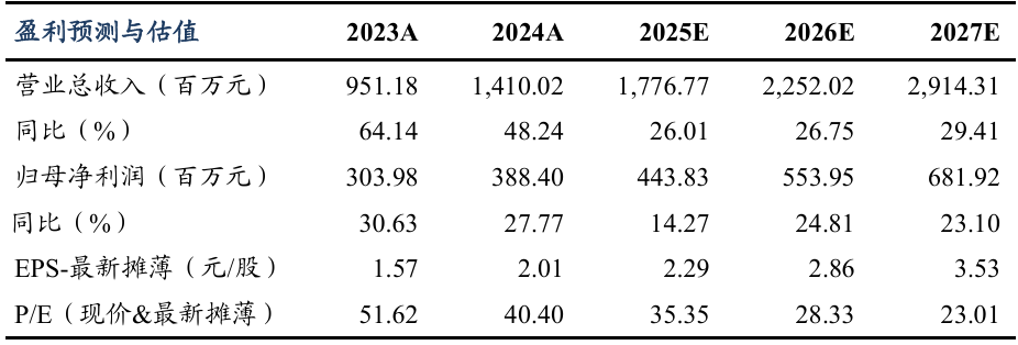 盈利预测与投资评级:考虑到新产品销售推广费用可能增加,我们将公司2025-2027年归母净利润由4.66/5.84/7.17亿元调整为4.44/5.54/6.82亿元,对应当前市值的PE分别为35/28/23倍,考虑到公司新产品推广顺利,维持“买入”评级。
