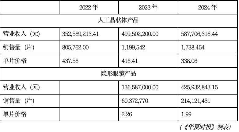 隐形眼镜同样面临价格压力,2024年其收入与销量虽均实现超过200%的大幅增长,但单片价格同比下降12.07%至1.99元。