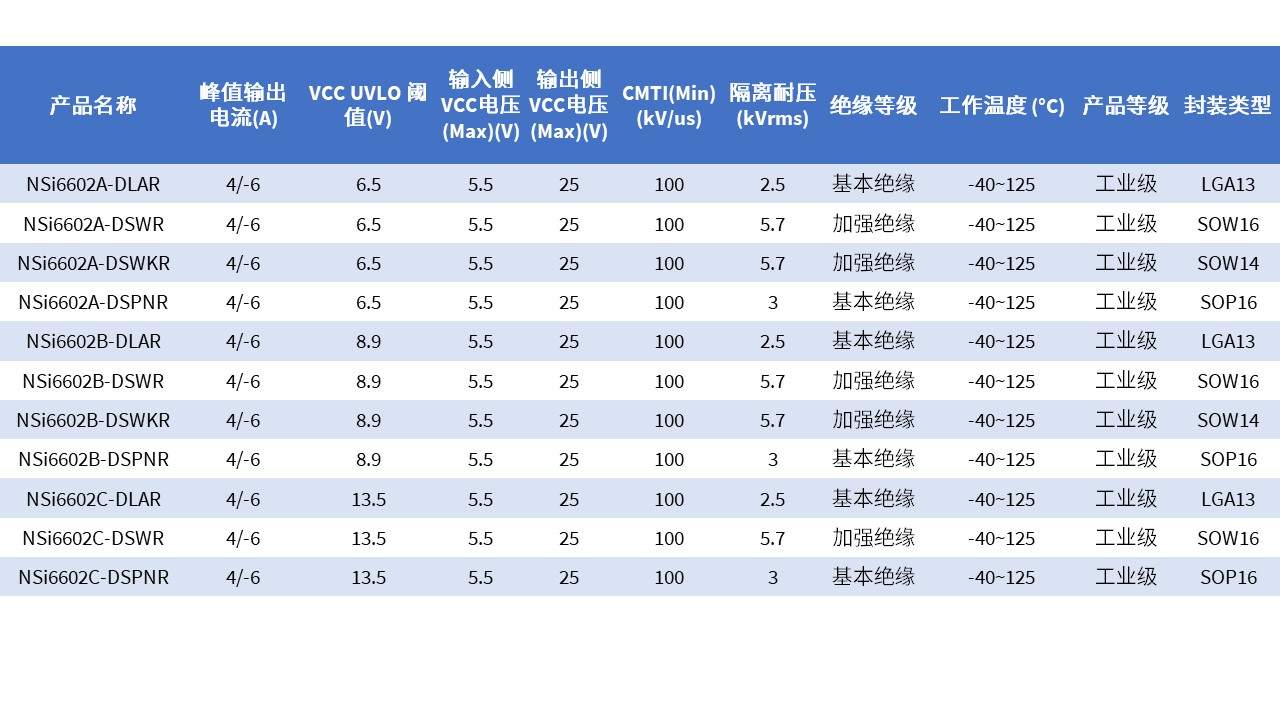 NSi6602隔离驱动器产品选型表