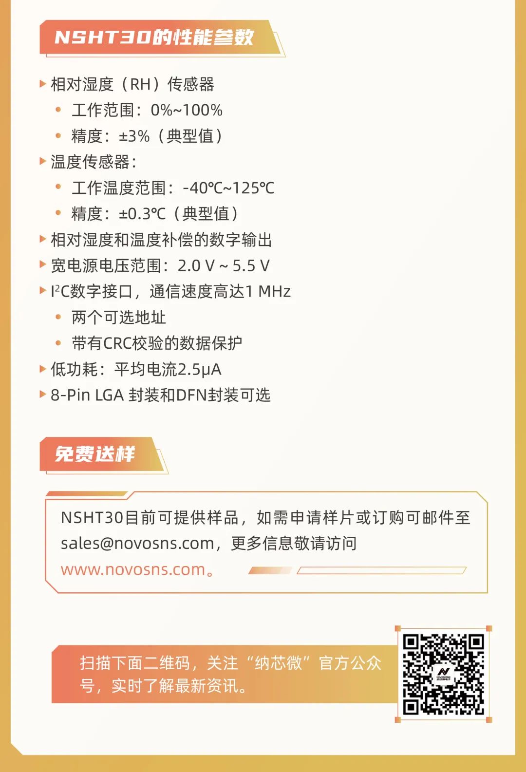纳芯微推出高可靠、高精度和低功耗的温湿度传感器NSHT30