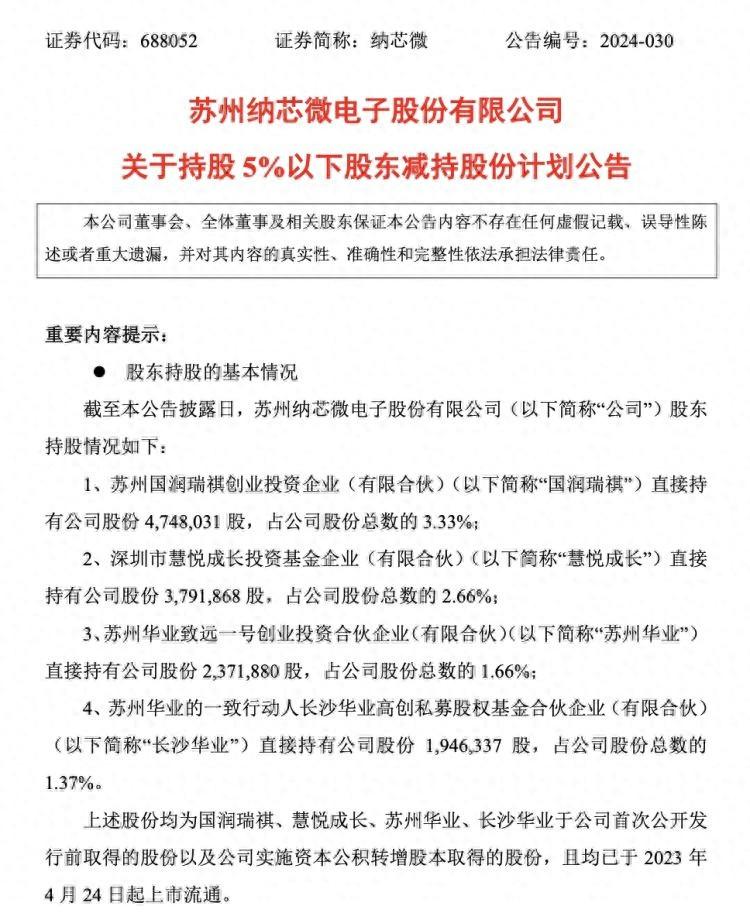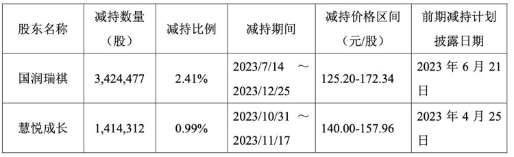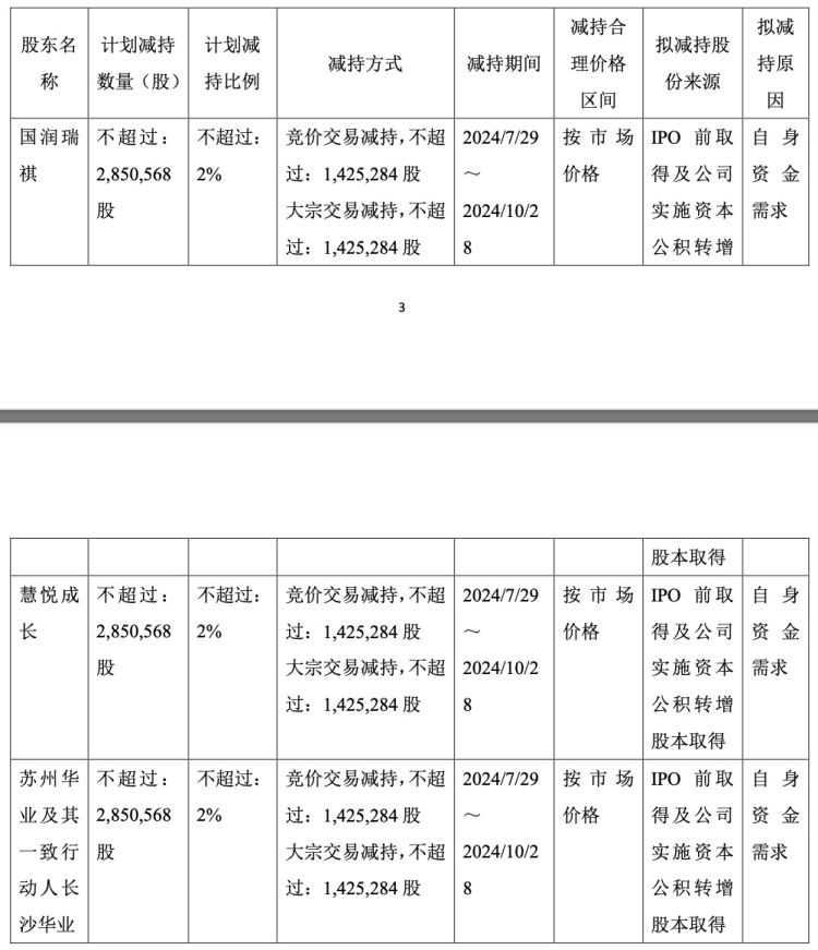 根据公告,上述股份均为国润瑞祺、慧悦成长、苏州华业、长沙华业于公司首次公开发行前取得的股份以及公司实施资本公积转增股本取得的股份,且均已于2023年4月24日起上市流通。减持原因均为自身资金需求。